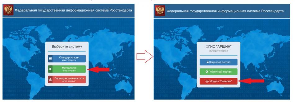 1. 1) В Интернете перейти на официальную страницу Федеральной государственной информационной системы Росстандарта, выбрать вкладку Метрология ФГИС «АРШИН», далее выбрать Модуль «Поверки»